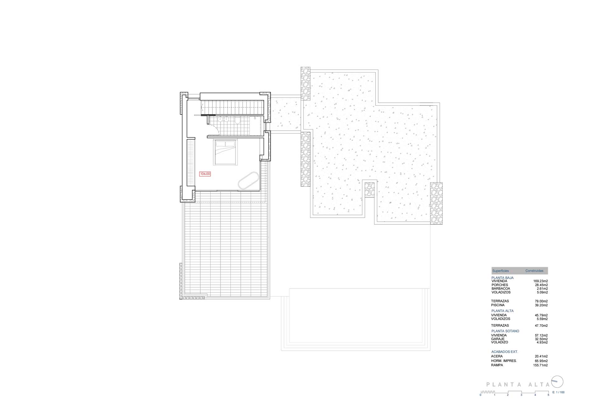 - Bovenverdieping: de master suite met eigen badkamer en een groot zonneterras. Hier geniet je in alle rust van de zonsopkomst én zonsondergang.