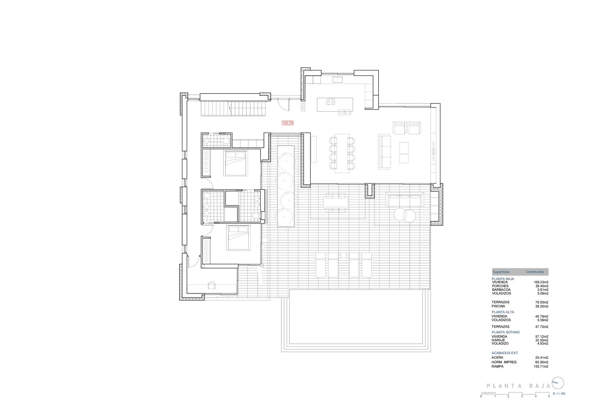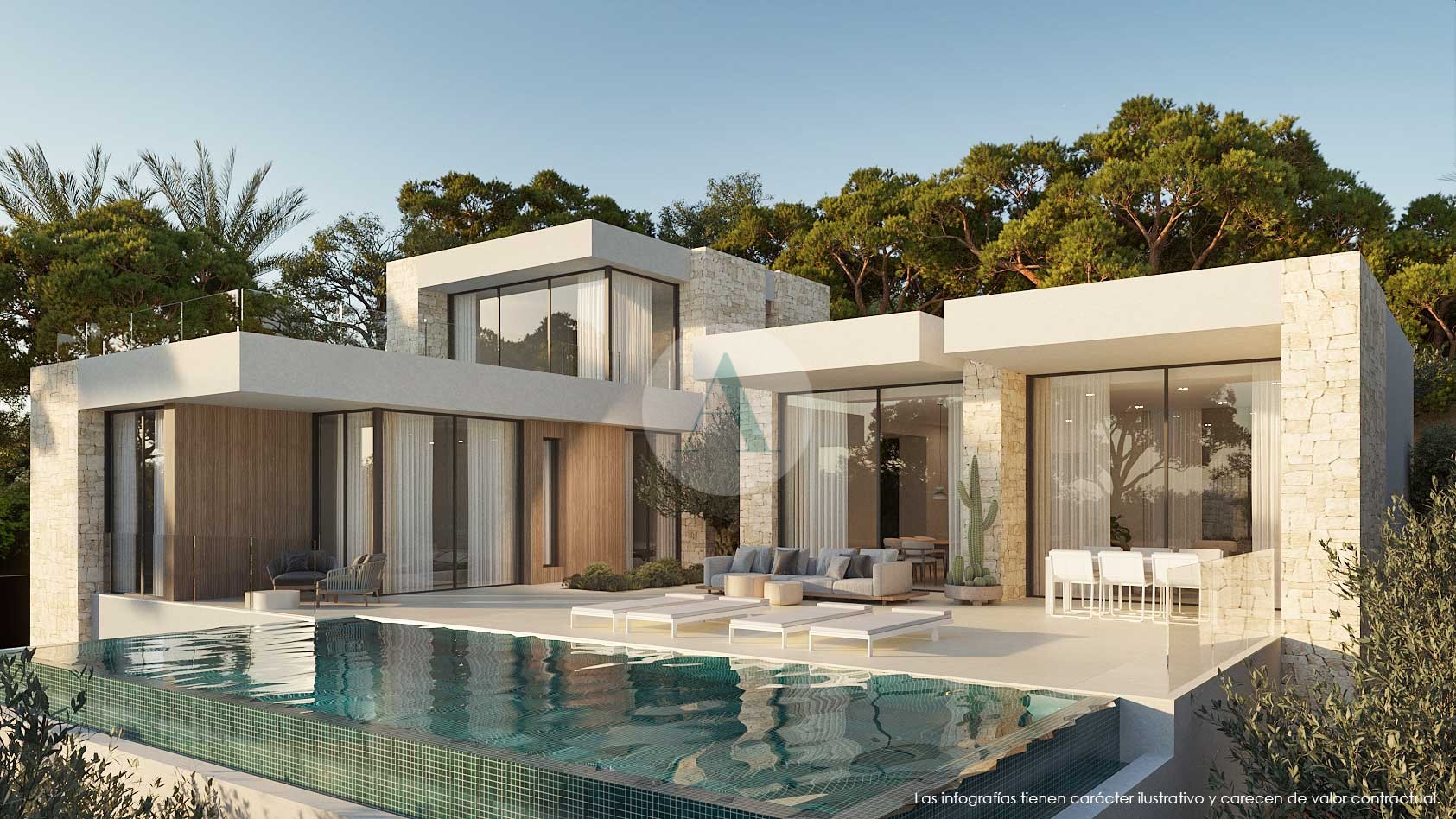 De villa is verdeeld over drie niveaus, met een doordachte en elegante architectuur: