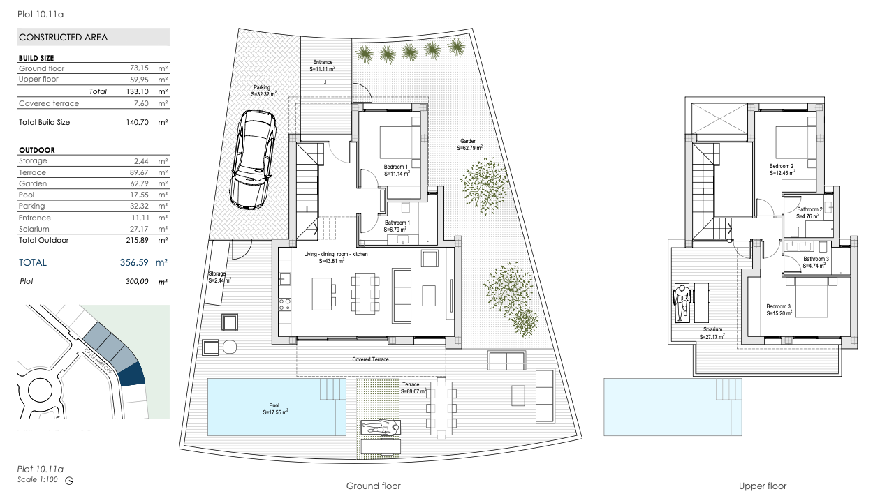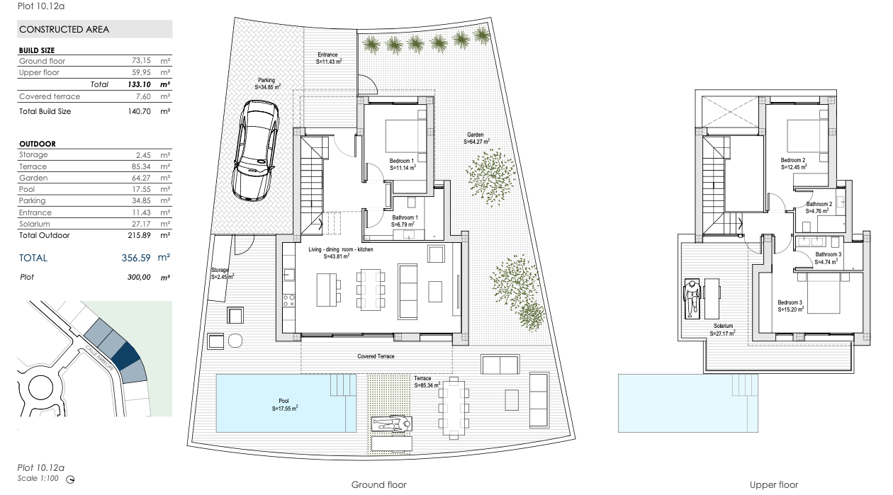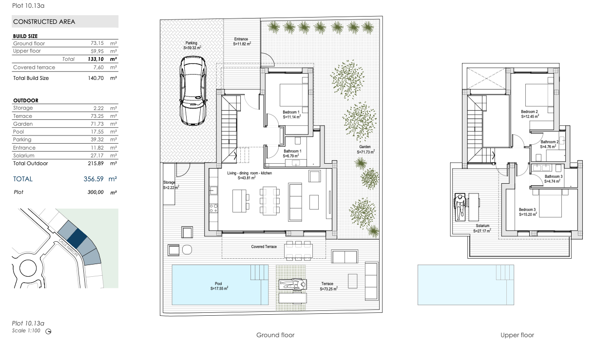 De golfbaan van Roda Golf ligt op amper 500 meter van deze woningen. Op slechts 4 km bevinden zich de stranden aan de Mar Menor. Voor dagelijkse boodschappen, gezellige restaurants en bars ligt het commercieel centrum slechts op 2,5 km verder.