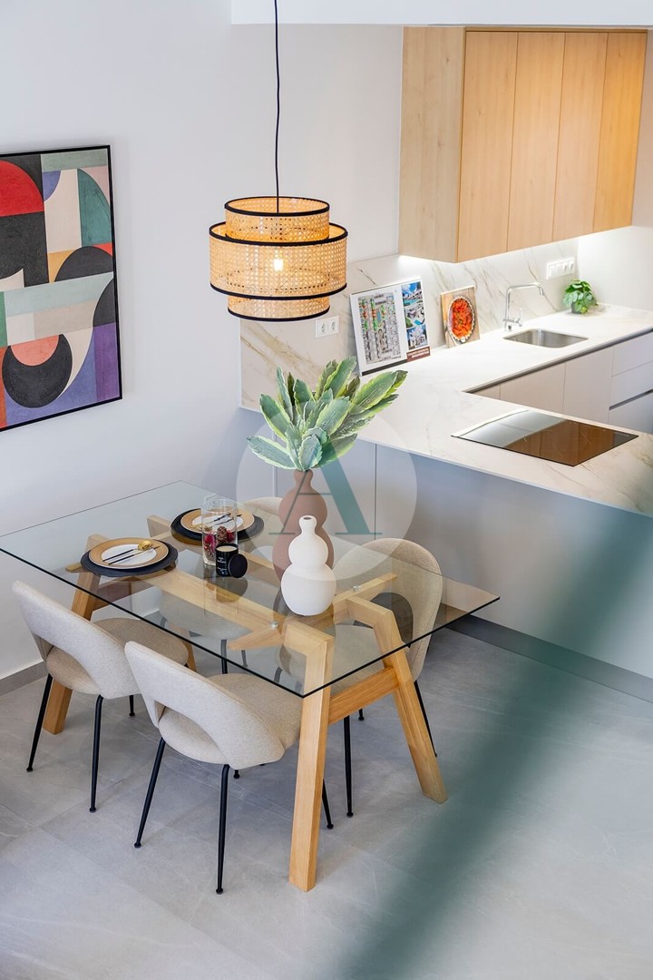 Welkom bij Casa Oranger, een nieuw project van moderne rijtjeshuizen in de gewilde Vistabella Golf urbanisatie. Deze elegante woningen zijn ontworpen voor modern wonen, met 3 slaapkamers en 3 badkamers verdeeld over twee verdiepingen, perfect voor gezinnen of mensen die op zoek zijn naar extra ruimte en comfort.