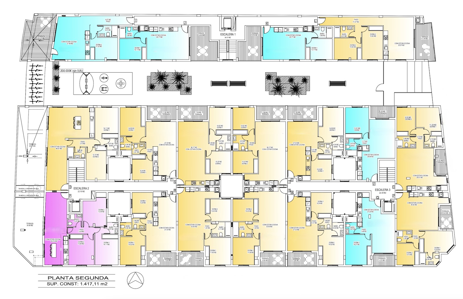 Dit project biedt appartementen met 1, 2 en 3 slaapkamers en 1 of 2 badkamers, met een praktische indeling en efficiënt gebruik van de ruimte.