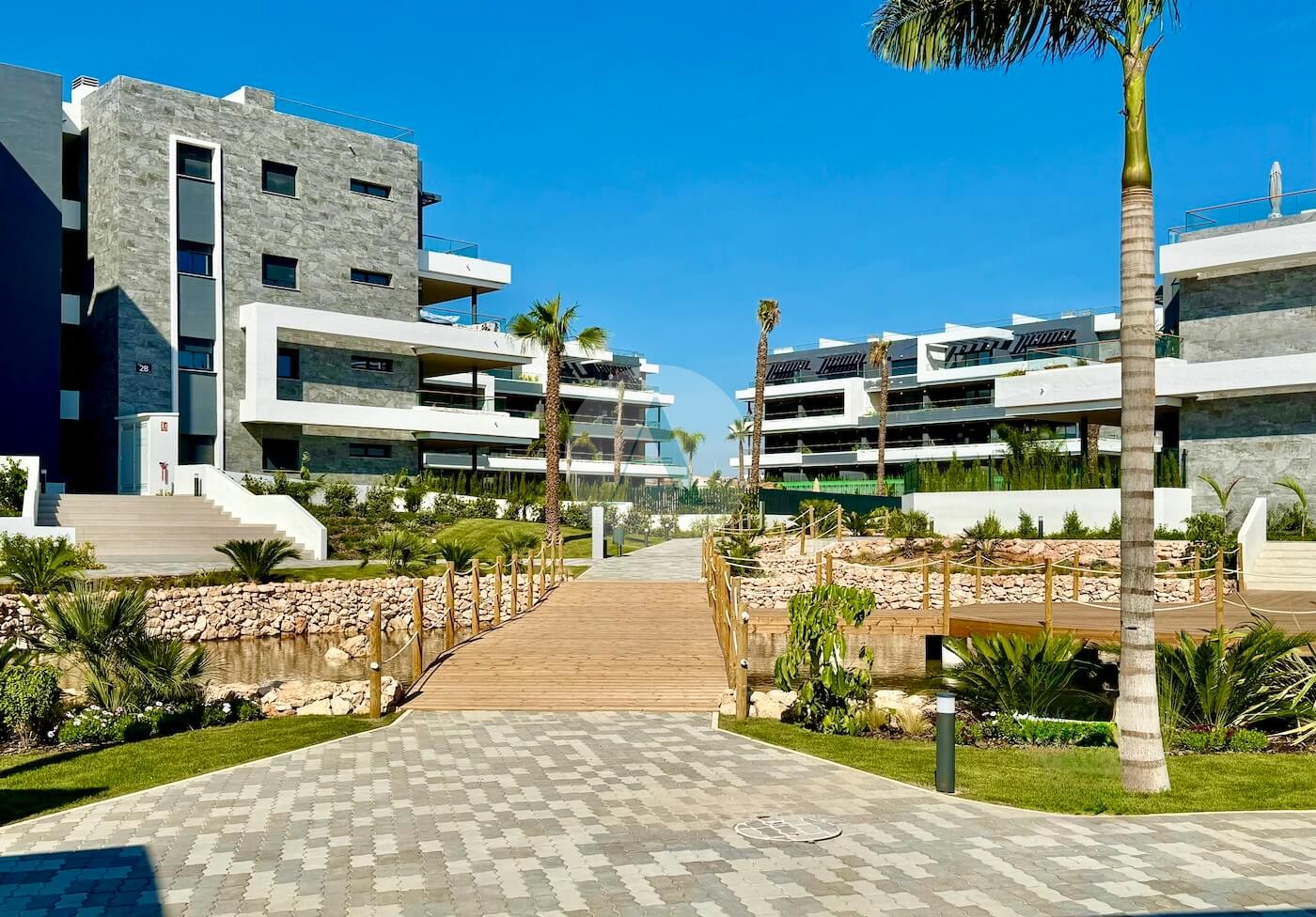 De gemeenschappelijke ruimten in dit nieuwe project, die meer dan 15.200 vierkante meter beslaan, nodigen bewoners uit om een gezonde en actieve levensstijl te omarmen. Twee zwembaden voor volwassenen, twee kinderbaden en twee verwarmde jacuzzi's bieden volop mogelijkheden voor ontspanning en relaxen. Een speciale kinderspeelplaats, jeu de boulesbanen en groene ruimten versierd met geurige planten, palmbomen, meren, fonteinen en kronkelende paden creëren een idyllische omgeving voor zowel jong als oud.